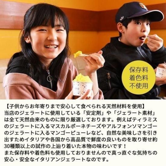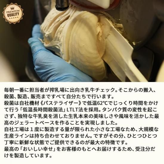 ※ジェラート(アイスミルク)のため原則賞味期限の表示はございませんが、品質管理のため出荷日から1ヶ月以内が美味しく召し上がっていただける目安としています。お早めにお召し上がりください。